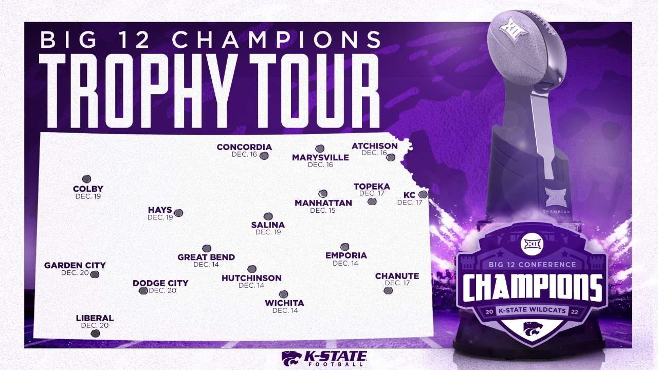 MANHATTAN – Kansas State Football is celebrating its 2022 Big 12 title with the K-State Family with a 19-stop Championship Trophy Tour that began today.