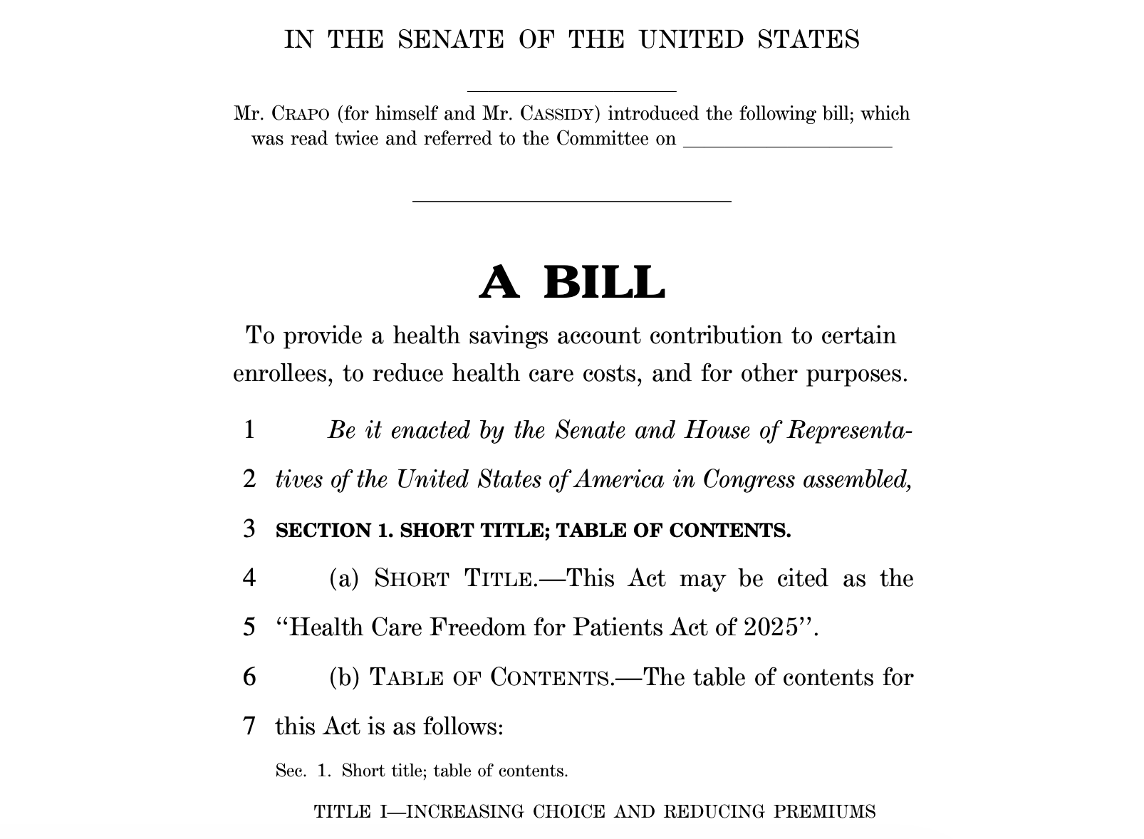 The Cassidy-Crapo legislation would have the Department of Health and Human Services deposit money into Health Savings Accounts for people enrolled in bronze or catastrophic health insurance plans purchased on the ACA marketplace in 2026 or 2027, according to a summary of the bill.