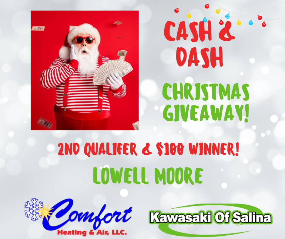 Congrats to Lowell Moore! He just won $100 Visa gift card and is qualified to win a brand new KFX90 ATV with Comfort Heating & Air, Kawasaki of Salina, and Salina Post this Christmas.