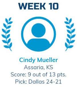 Congratulations to Cindy Mueller of Assaria, the Week 10 winner in our Gridiron Glory contest! Cindy wins four tickets to KC and the Sunshine Band at the Stiefel Theatre.