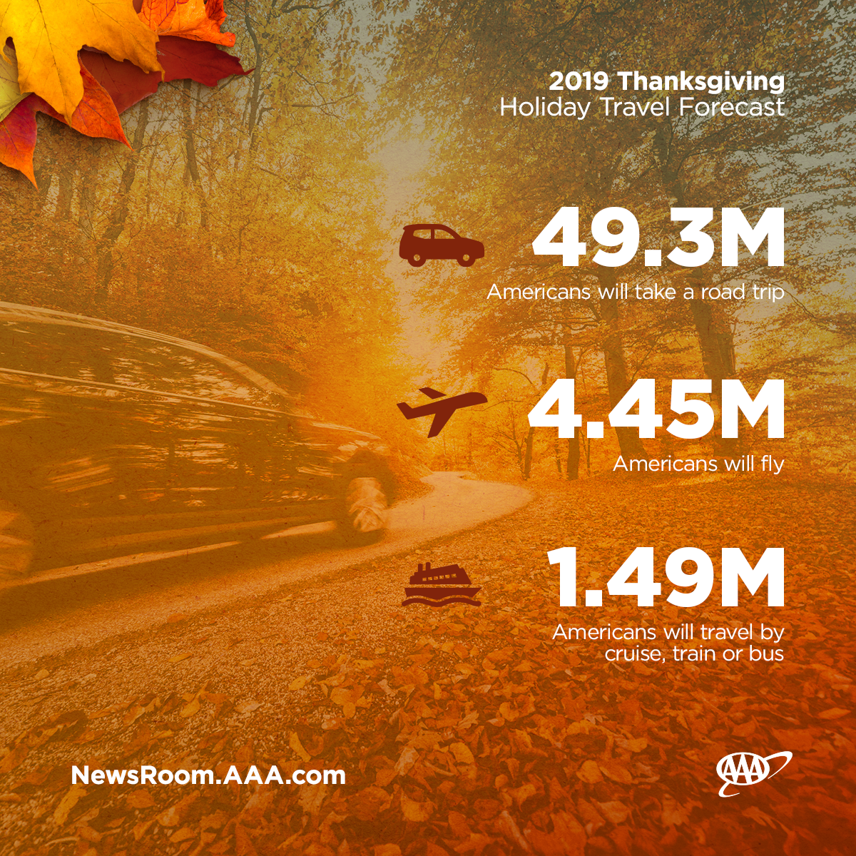 “Millions of thankful Americans are starting the holiday season off right with a Thanksgiving getaway,” said Paula Twidale, vice president, AAA Travel. “Strong economic fundamentals are motivating Americans to venture out this holiday in near-record numbers. Consumer spending remains strong, thanks to increasing wages, disposable income and household wealth, and travel remains one of their top priorities for the holiday season.”