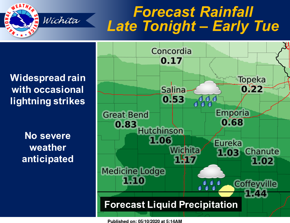 Widespread rainfall will begin late tonight and last through early Tuesday morning. The heaviest rain is expected to fall Monday night and be focused over southern Kansas, NWS noted.