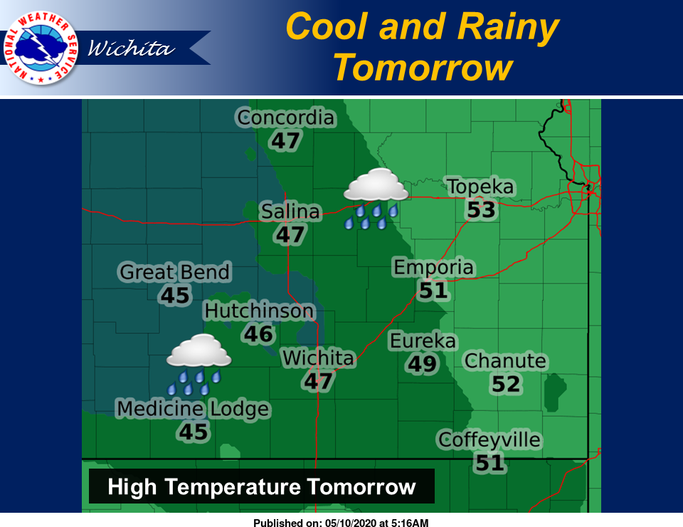 Expect a raw and soggy start to the work week, according to the National Weather Service (NWS) in Wichita.