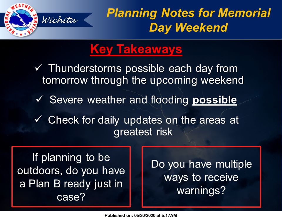 According to the National Weathe Service (NWS) in Wichita, the threat of thunderstorms will increase over the next several days.