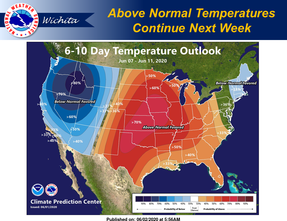 Afternoon highs during the first half of June typically reach in the low to mid 80s, but we will be well above that for the rest of the week this week, NWS noted. Afternoon highs in the 90s will be common, and some locations may approach 100 by Thursday.