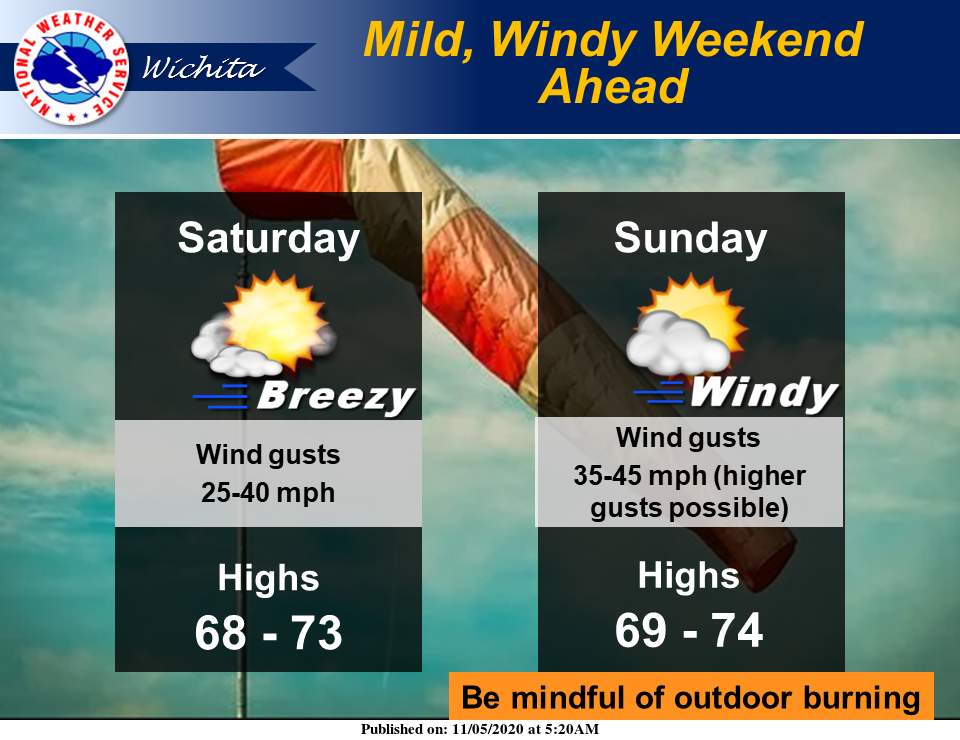 Mild, windy, and mostly dry conditions will be the theme for the upcoming weekend, NWS noted. With the windy conditions, be mindful of any outdoor burning, or anything that can cause sparks outdoors.