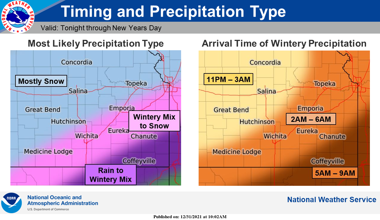 UPDATE 8:30 p.m. Friday: The National Weather Service has moved Dickinson, Marion, and McPherson counties into winter weather advisory status. Please see below.