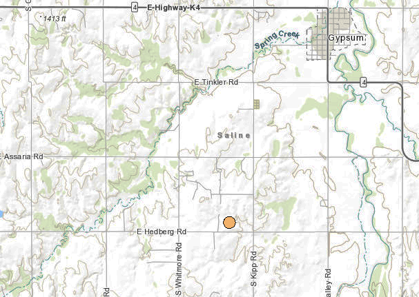 According to the Kansas Geological Survey, the first, a 2.8 magnitude quake, struck at 12:20 a.m. Monday southwest of Gypsum. It was centered just northeast of the E. Hedberg Road/S. Whitmore Road intersection.