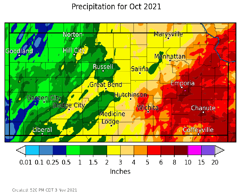 Salina was warmer and had near normal precipitation in October.