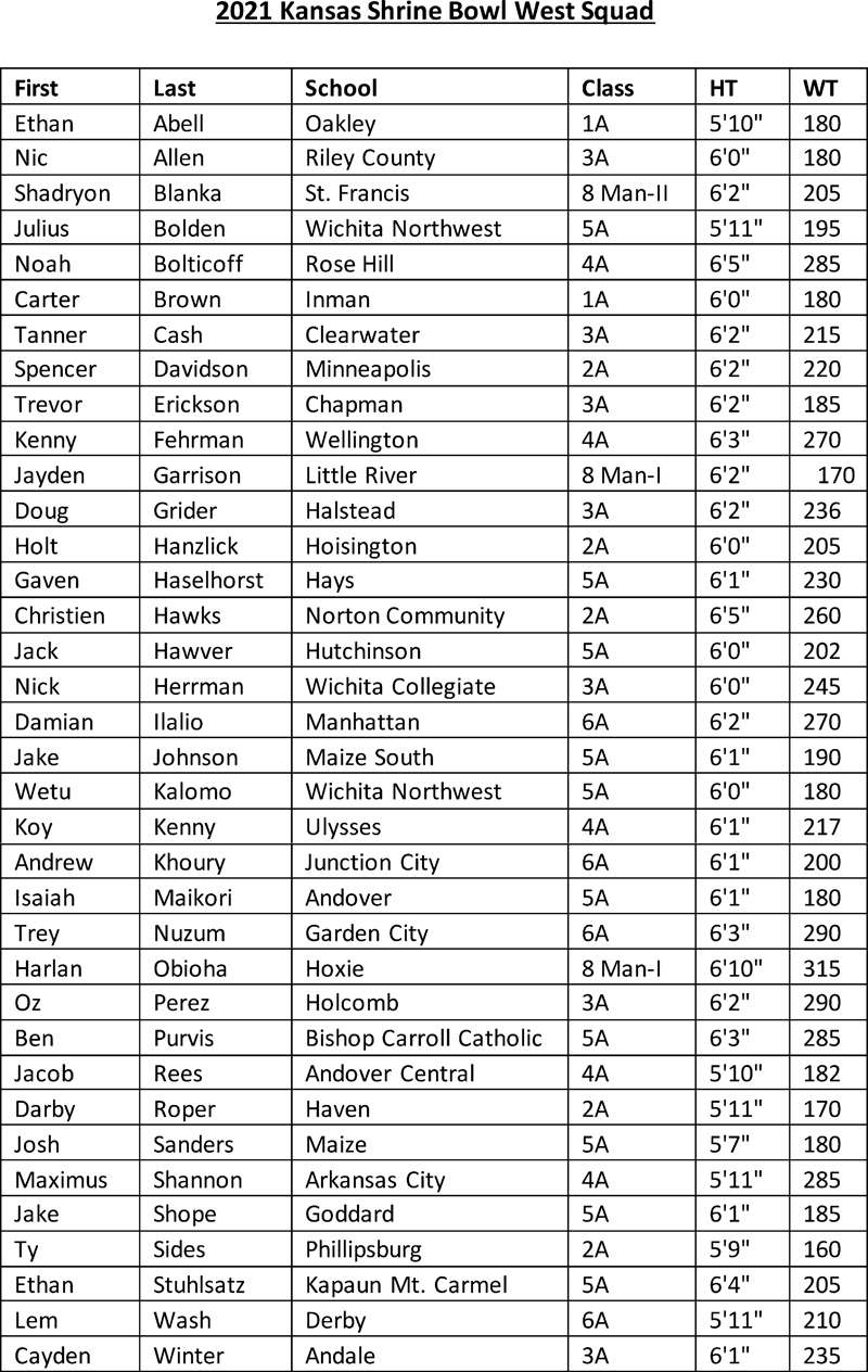 “We are very excited about the great group of young men selected for this year’s game,” said B.J. Harris, executive director of the Kansas Shrine Bowl. “These players and coaches now have an incredible opportunity ahead of them, one that is sure to have a lasting impact in their life.”