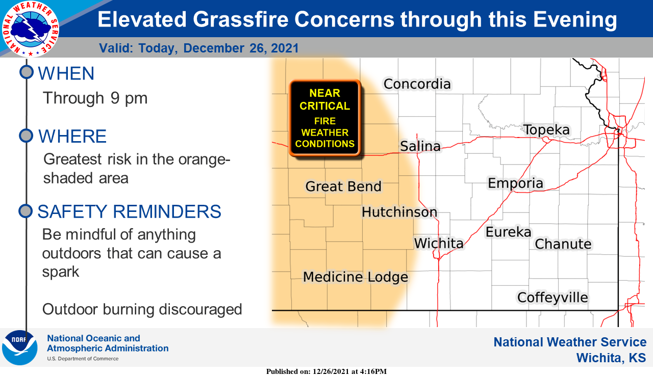 Here's an updated look at where the greatest risk of grassfires will be through late this evening. If in the orange shaded areas, please continue to be mindful of anything that can cause sparks.