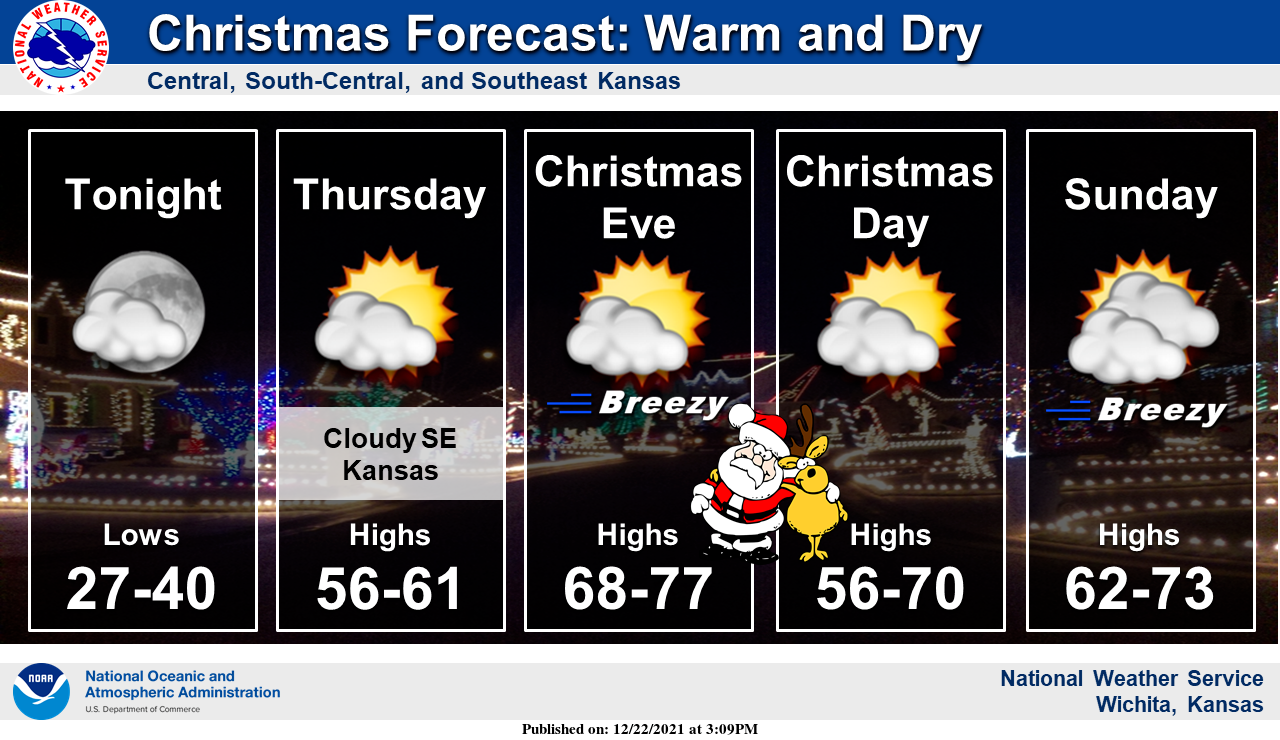 Unseasonably warm and dry conditions look to continue through the Christmas holiday, according to the National Weather Service.