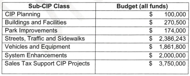 Sales tax supported CIP projects proposed for 2022 include the following.