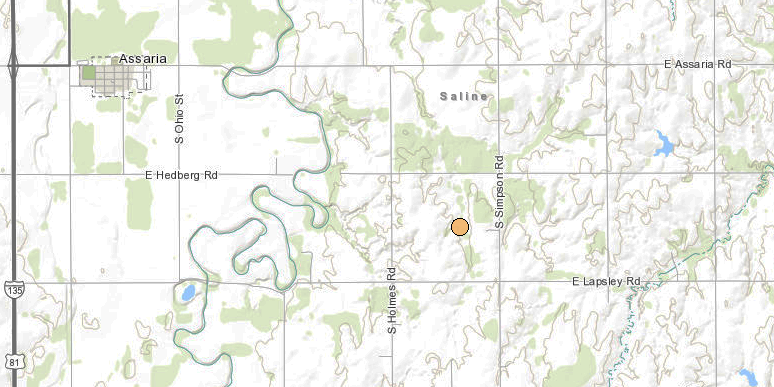 According to the Kansas Geological Survey, the 2.0 magnitude quake struck at 8:18 p.m. Sunday several miles southeast of Assaria. The quake was centered nearly a half mile west of S. Simpson Road between E. Hedberg Road and E. Lapsley Road.