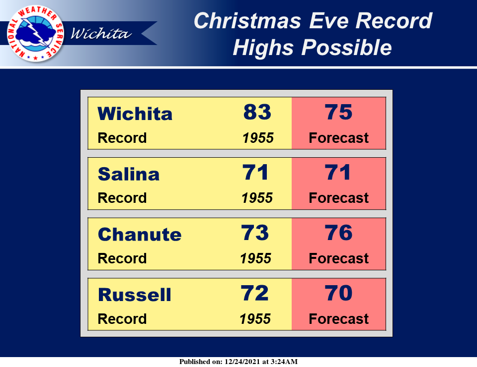 Though for locations like Wichita, it will be difficult to beat Christmas Eve of 1955, where many locations in southern and southwest Kansas topped out over 80 degrees that day.