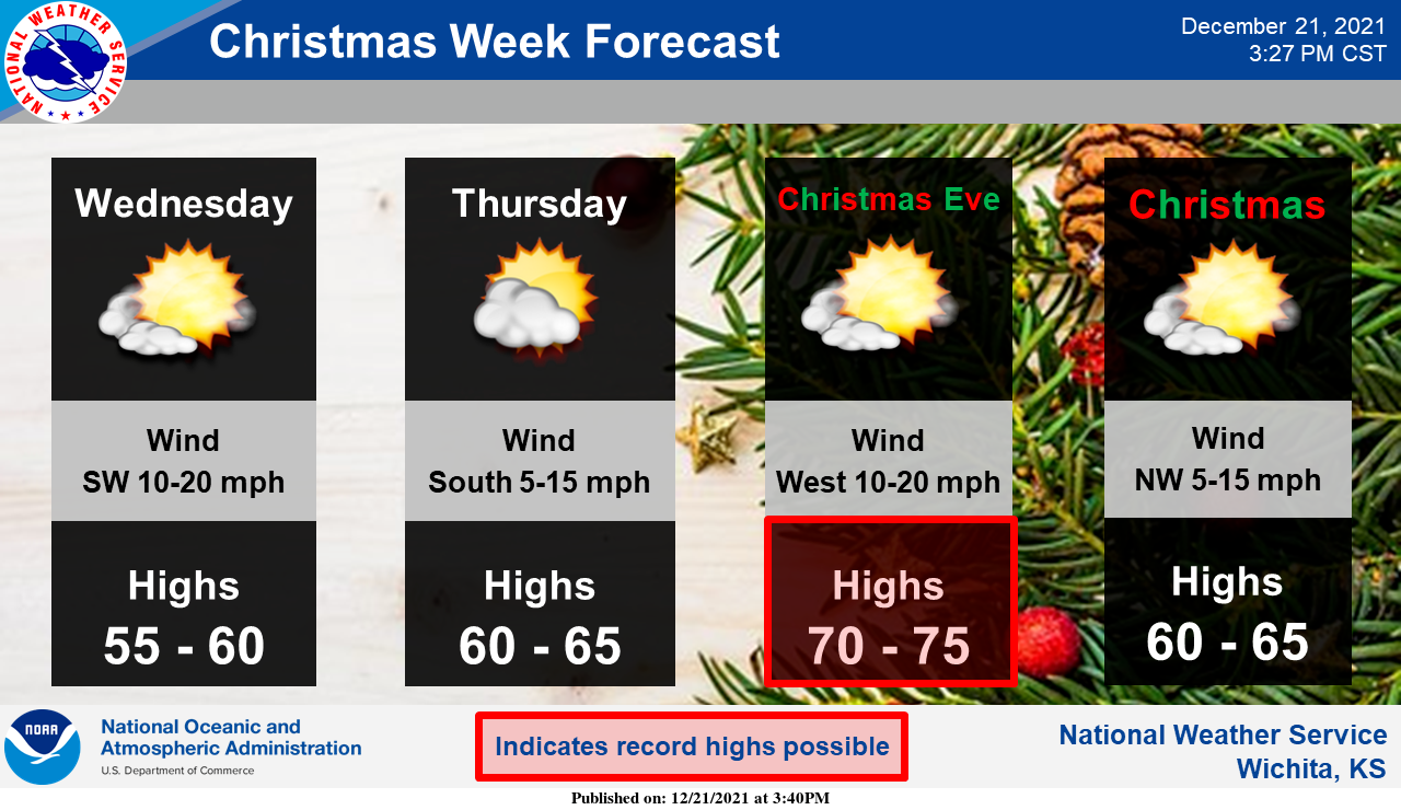 As Christmas Day draws nigh, the weather will trend away from what is normal for this time of year in Kansas, according to the National Weather Service.