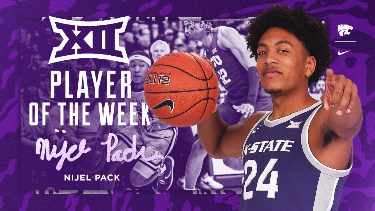 MANHATTAN – Sophomore guard Nijel Pack was selected as the Phillips 66 Big 12 Player of the Week for the second time this season on Monday after he posted consecutive 20-point performances in a pair of wins this past week, including the game-winner against Oklahoma State.