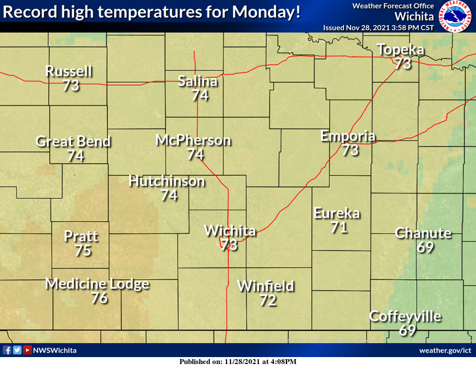 Much of the area is in line for record high temperatures for Monday, according to the National Weather Service.