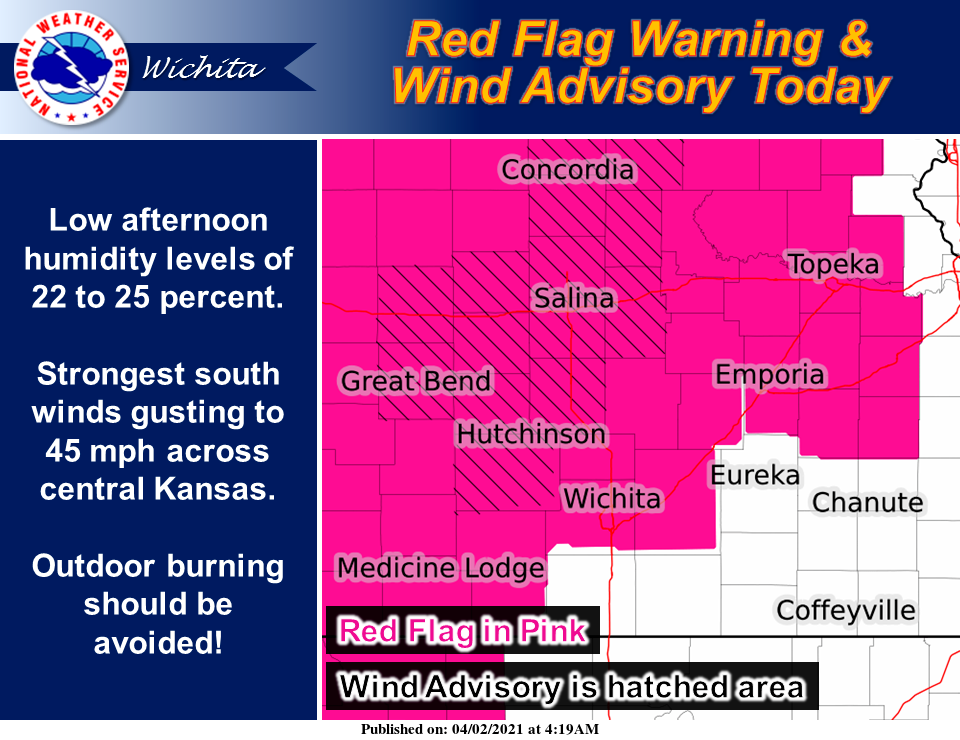 The National Weather Service in Wichita has issued a red flag warning in effect from noon to 7 p.m. Friday for the following counties in our area.